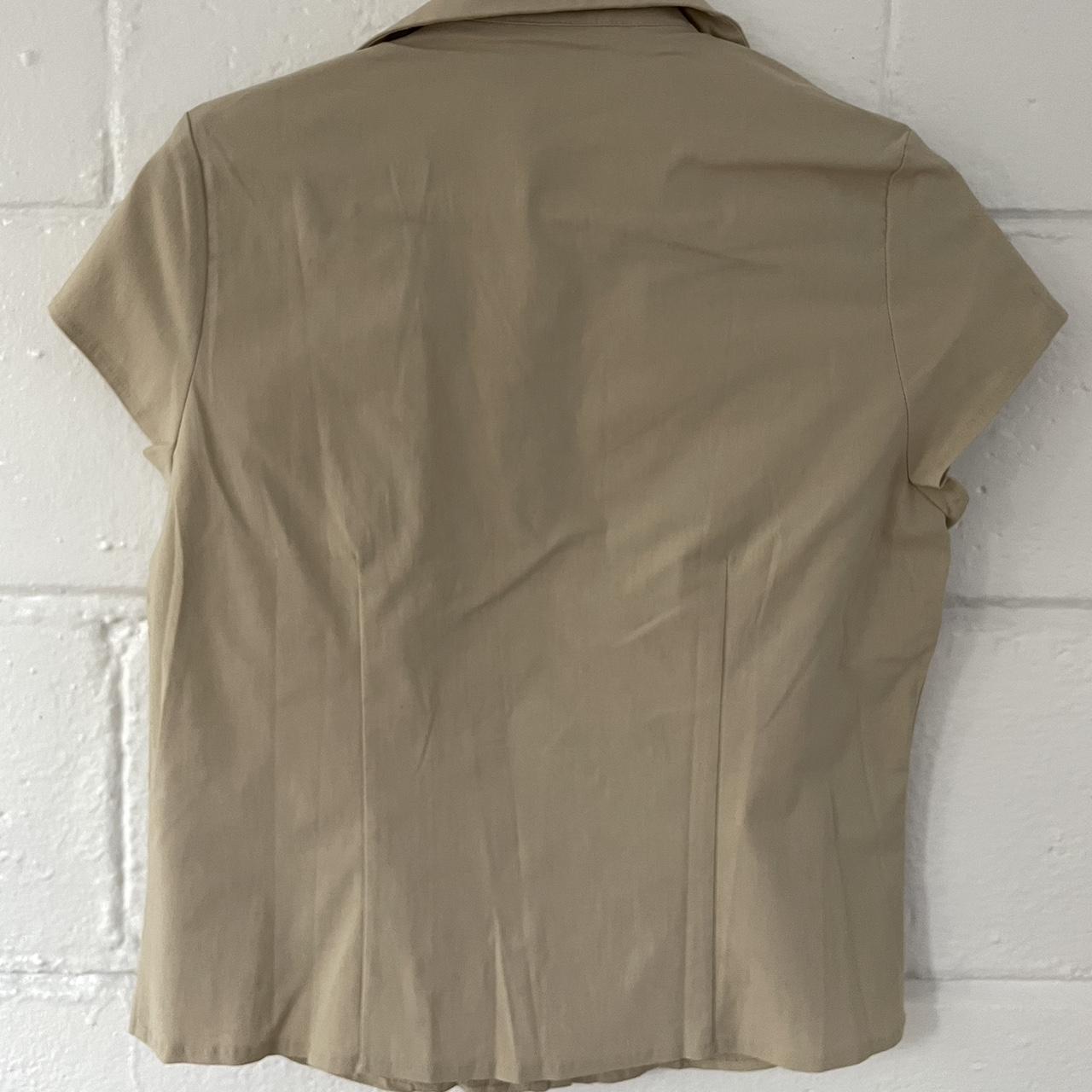 By Deville. Italian brand. Short sleeve nude beige blouse with a collared neck, hook-and-eye closure and corset-inspired boning details. Ideal for a size M-L. Labeled a size 40
