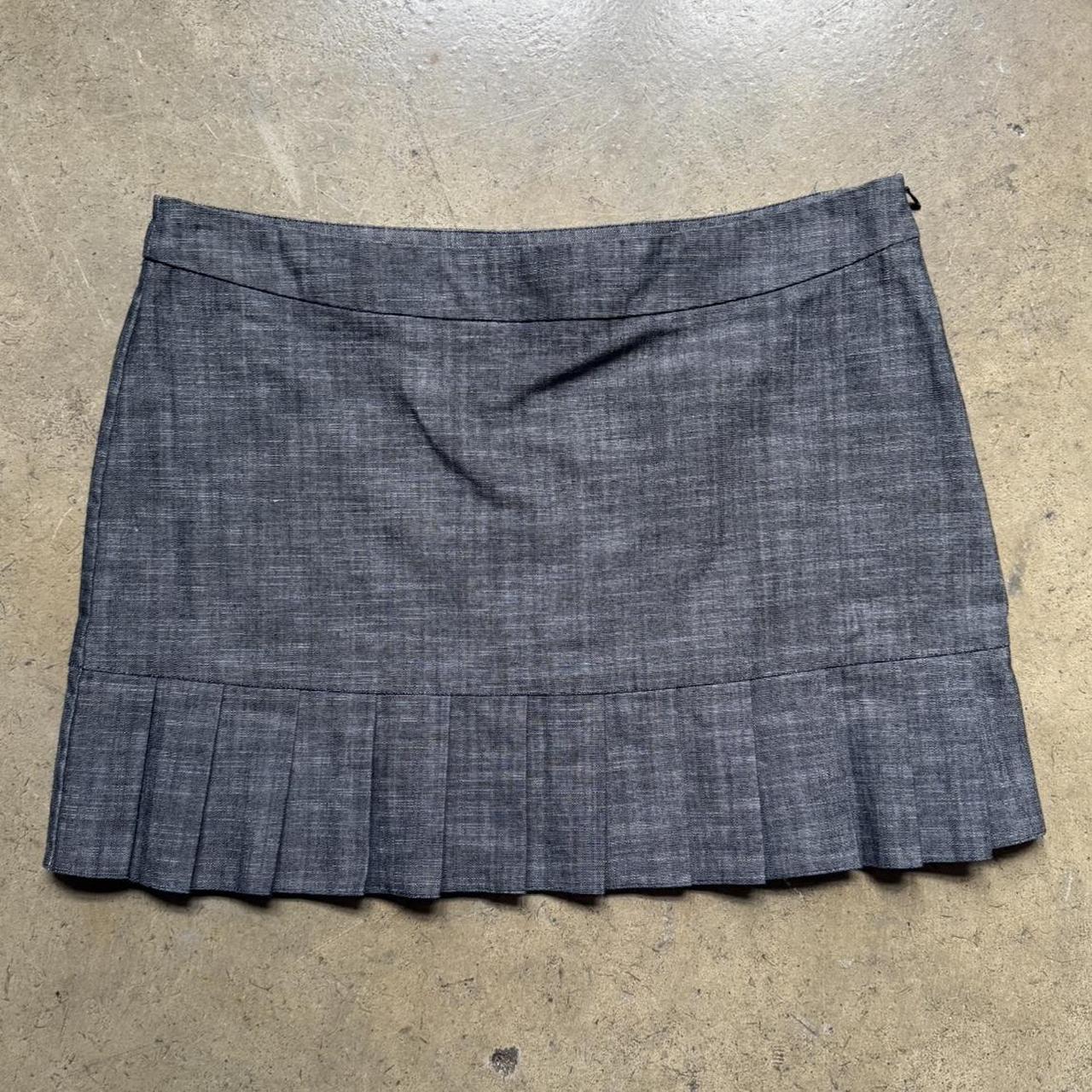 Grey mini skirt with pleats at the hemline. Side zip and button closure. Italian brand
