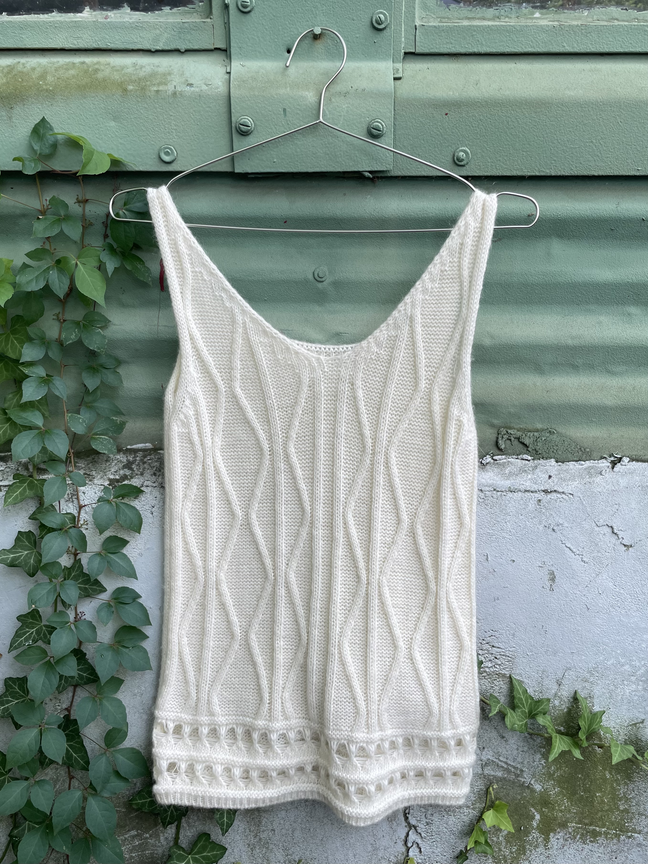Knitted sleeveless top made of a mohair and wool blend. Ideal for a S/M. Made in Italy