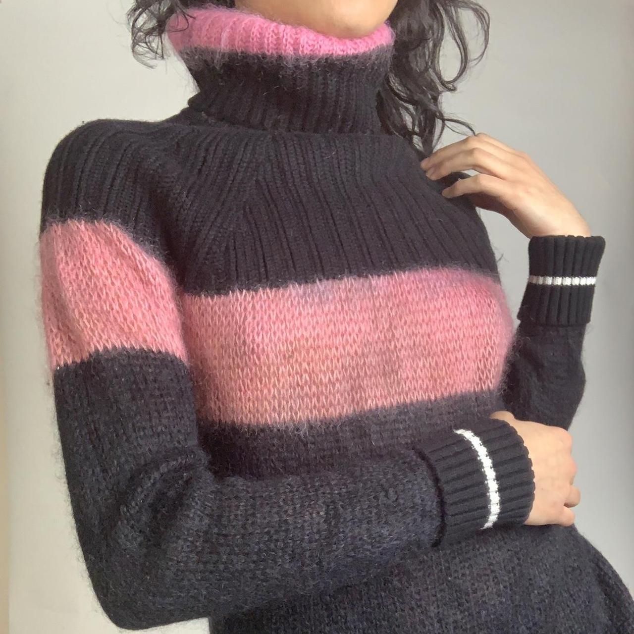 By Fendi. Washed black knit sweater with a light pink stripe detail. Ideal for a small