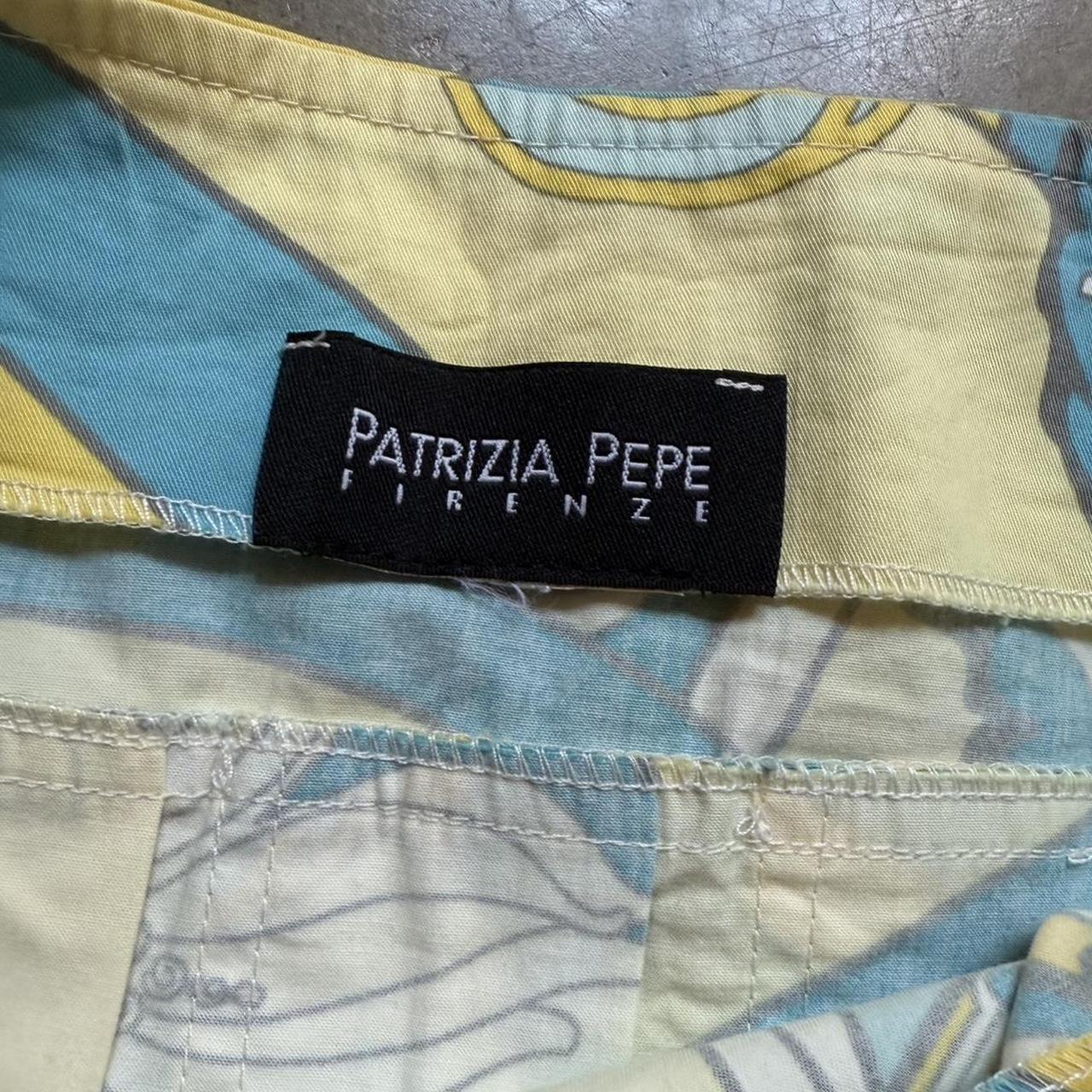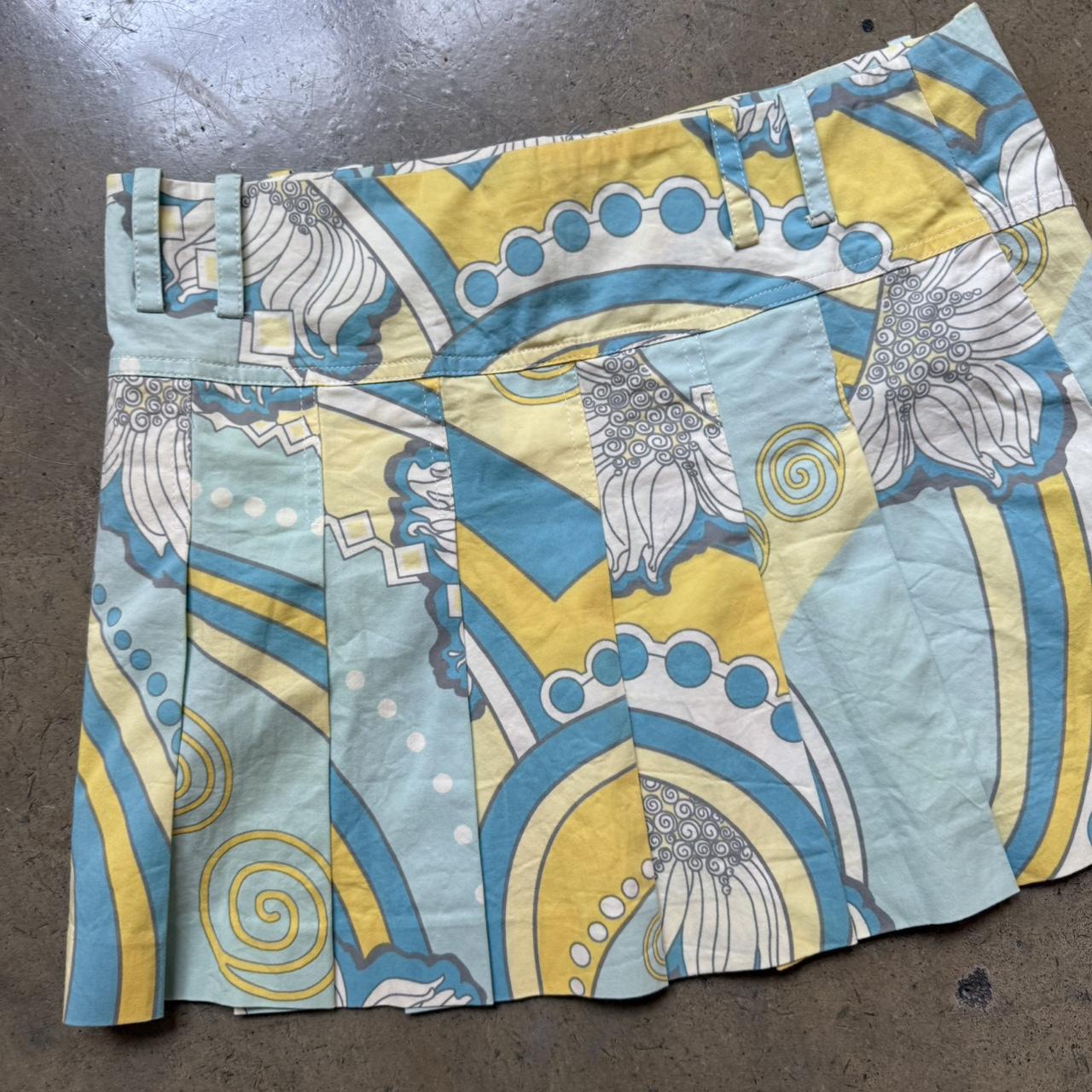 By Patrizia Pepe. Emilio Pucci style abstract geo print blue multicolor cotton mini skirt. With pleat details along the back. Has a side zip closure. Ideal for a size small