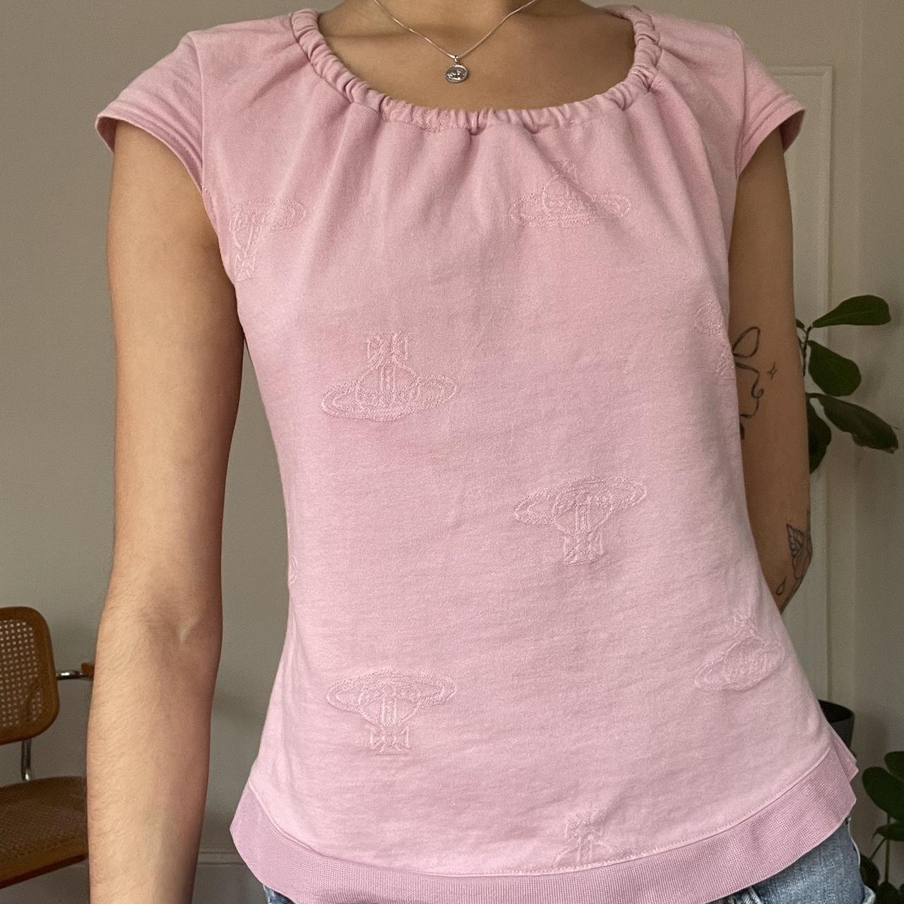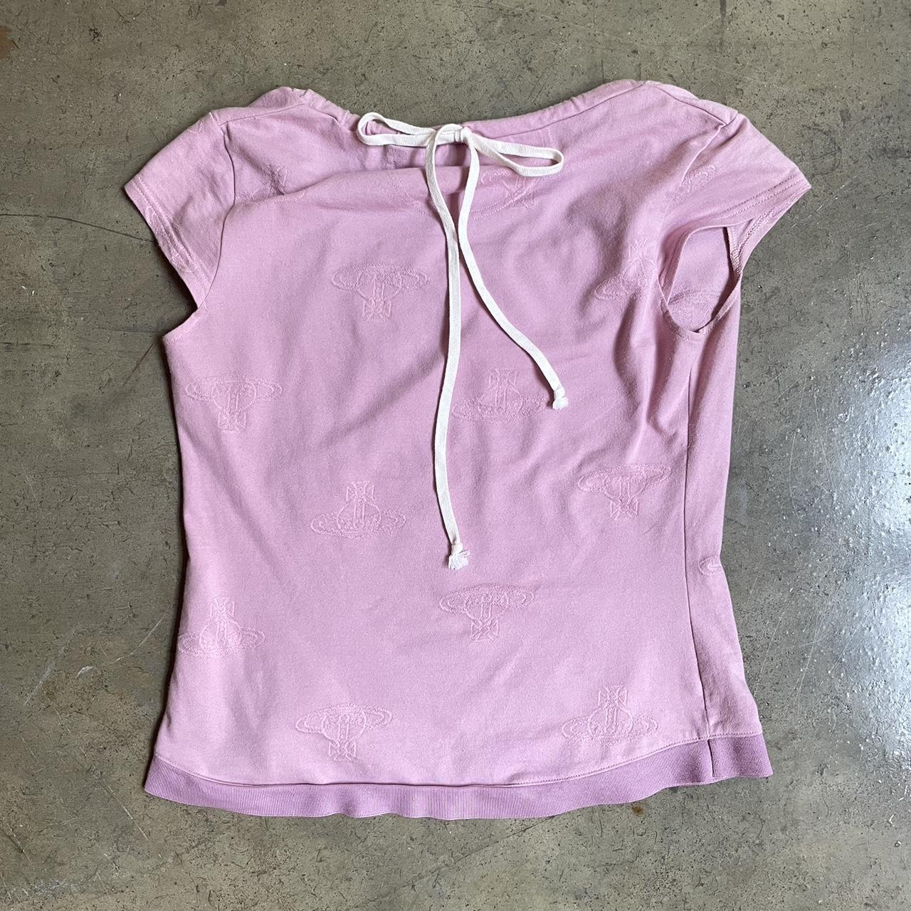 By Vivienne Westwood Red Label. With iconic planet logo embroidered on the fabric. Has a white shoe lace drawstring detail on the back neck seam. Labeled a size 2, ideal for XS/S